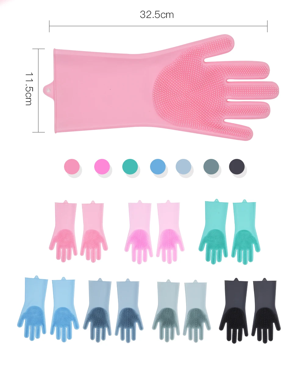 Dish Washing Gloves Silicone Scrubber Cleaning Gloves Heat Resistant Easy Household Magic Silicone Gloves For Washing Kitchen